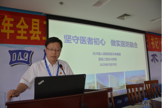 會(huì)議現(xiàn)場(chǎng),長(zhǎng)興縣人民醫(yī)院醫(yī)共體集團(tuán)院長(zhǎng)馬岳峰與縣衛(wèi)健局黨委書記、局長(zhǎng)郎濤簽訂醫(yī)療質(zhì)量責(zé)任狀;黨委書記孫海明代表集團(tuán)圍繞“醫(yī)防融合”作交流發(fā)言。