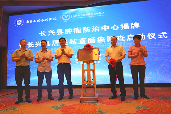 啟動(dòng)儀式上,與會(huì)領(lǐng)導(dǎo)、嘉賓觀看了長(zhǎng)興縣腫瘤防治中心宣傳片,并共同見證了長(zhǎng)興縣腫瘤防治中心正式揭牌。