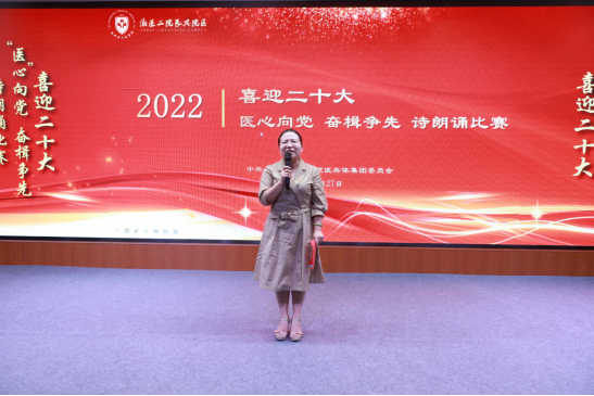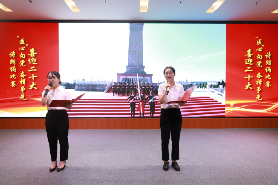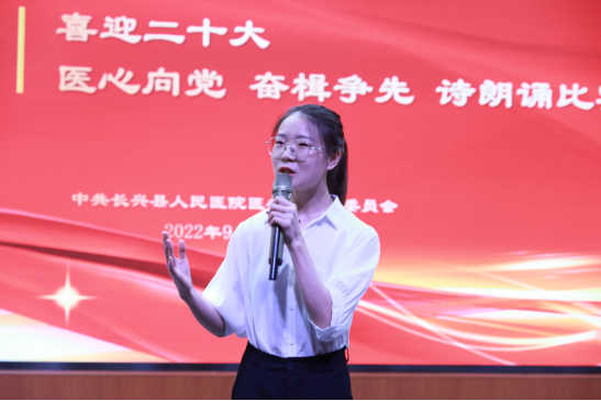 本次比賽共有27個(gè)參賽節(jié)目,由25個(gè)黨支部選送,近60名醫(yī)務(wù)工作者參賽。朗誦內(nèi)容、形式多樣,臺(tái)下觀眾熱情高漲,為參賽選手加油鼓勁。