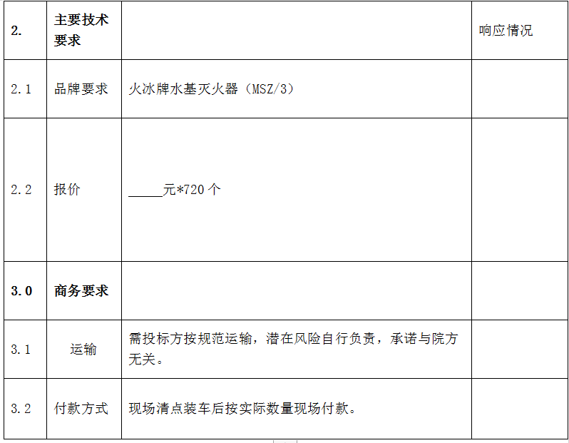 3. 相關(guān)資質(zhì):供應(yīng)商應(yīng)具備《中華人民共和國(guó)政府采購(gòu)法》第二十二條規(guī)定的條件,同時(shí),合格投標(biāo)人必須達(dá)到以下商務(wù)要求:營(yíng)業(yè)執(zhí)照、法人授權(quán)書、身份證復(fù)印件、處理滅火器必備的資質(zhì)。以上資質(zhì)提供復(fù)印件供院方存檔,原件現(xiàn)場(chǎng)備查,不提供原件視為虛假應(yīng)標(biāo)。